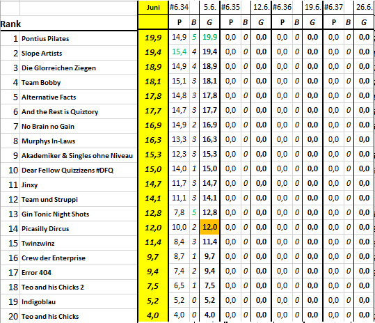 Es hat auf jeden Fall extrem viel Spaß gemacht, so viele verschiedene Formate gegen die Besten der Besten zu spielen und ich will mich in diesem Zusammenhang auch beim Quizstandort Memmingen bedanken der mir jedes Monat so viel Freude bereitet, denn gerade wenn es um Kreativität und Innovation bei Quizformaten geht, ist Memmingen absolute Spitzenklasse. Auch wenn meine Ergebnisse im Last Quizzer Sitting Bewerb nicht übermäßig toll waren, es hat geholfen, dass ich das Format (Memmingen sei Dank) schon einmal gespielt habe.