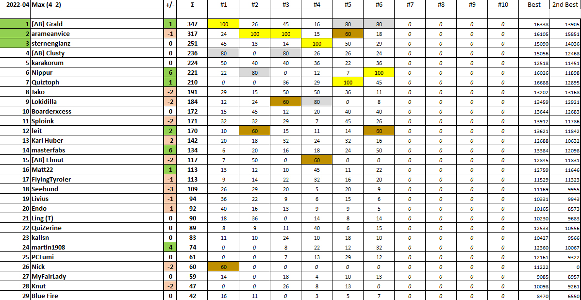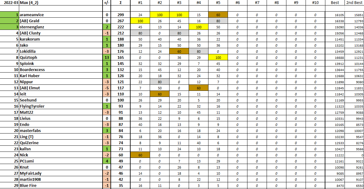Österreichische Quiz-Rangliste - 18. April 2022 - Top 30