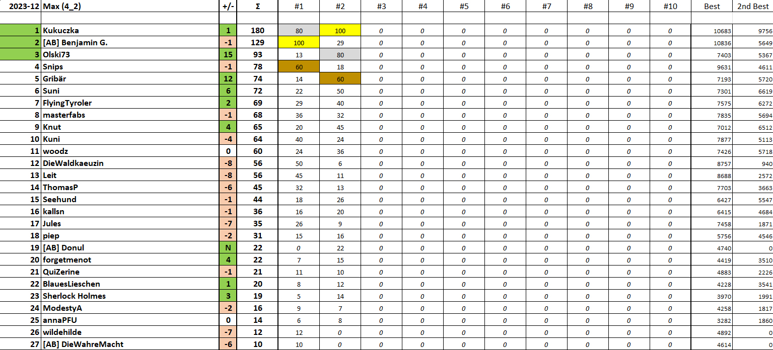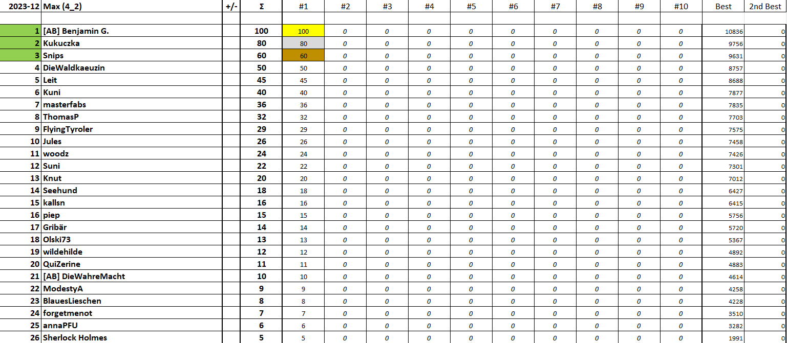 LIGA 3-2: Lars (Gold), Muckel95 (Silber), Maggie & Matze (Bronze)