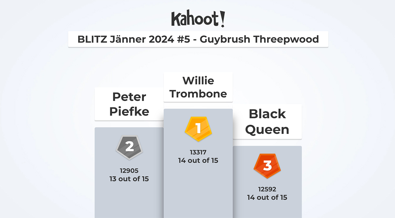 Alle für den BLITZ angemeldeten ÖQV-Mitglieder erhalten die Links zur 8. Runde der BLITZ Winterliga im Jänner (von 10) per Mail. Das Quiz könnt ihr von Montag (ca. 10:00) bis Dienstag (23:00) spielen.